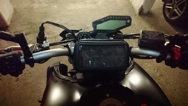 da ich den Orientierungssinn einer Scheibe Toast hab', brauchte ich für die Maschine auch eine Möglichkeit das Handy zu betreiben. Die gängigen Halter für Smartphones waren allesamt fürn Lenker und gefielen mir nicht / ohne Lackschutzfolie drunter hätt ich Angst zwecks Kratzern durch Reibung etc.