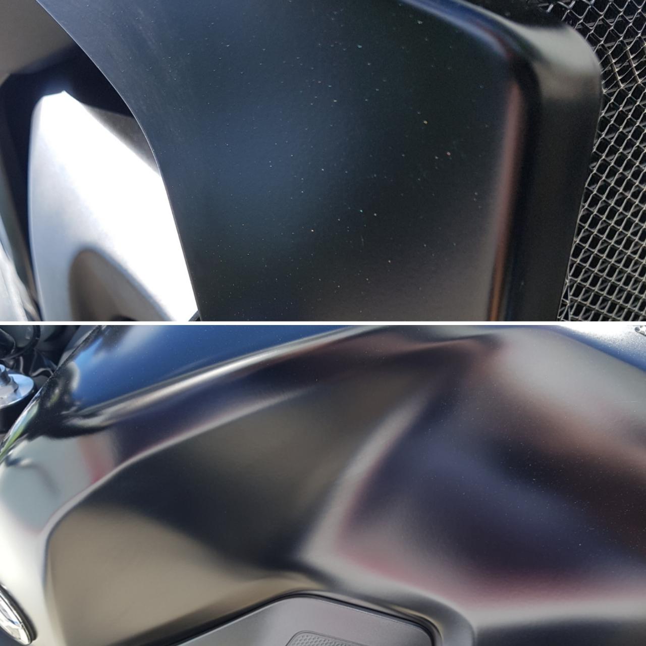 Ich habe bei meiner alten Maschine (MT07 Matt Grau) immer den Motul Matte Surface Reiniger und hochwertige Mikrofasertücher verwendet für das schnelle Säubern und Insekten entfernen nach dem Fahren.