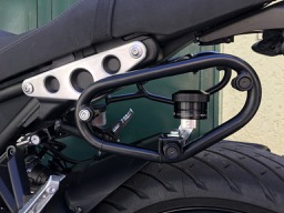 Nachdem der Nemo 2, den ich beim Motorblock installiert habe, undicht geworden ist, hab ich ihn beim Seitentaschenhalter von SW-Motech angebracht. Als Halterung habe ich 2 Winkel vom Baumarkt verwendet.