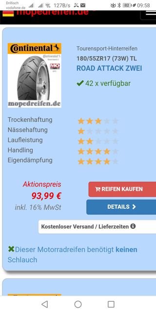 #32 Fahre den CRA3 mittlerweile etwa 5.000km und er haucht langsam sein Leben aus. Wird wohl noch für diese Saison reichen, aber spätestens 2021 kommt was anderes drauf. Bin zwar auch prinzipiell zufrieden damit, da super Grip in allen Lebenslagen, aber auf der Tracer ist der Reifer überhaupt nicht hochgeschwindigkeitsstabil. Da passt die Warnung von Conti schon, die ich halt erst nach der Montage gelesen habe. Über 170km/h kann ich mit den Reifen nicht mit einem sicheren Gefühlt fahren. Daher kommt als nächstes vermutlich der S22.