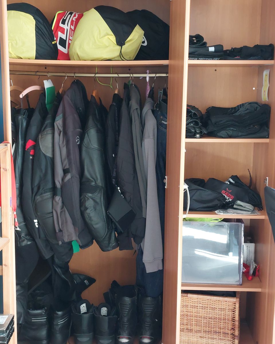habe ich mal den Schrank für die Mopedklamotten so richtig ausgemistet.