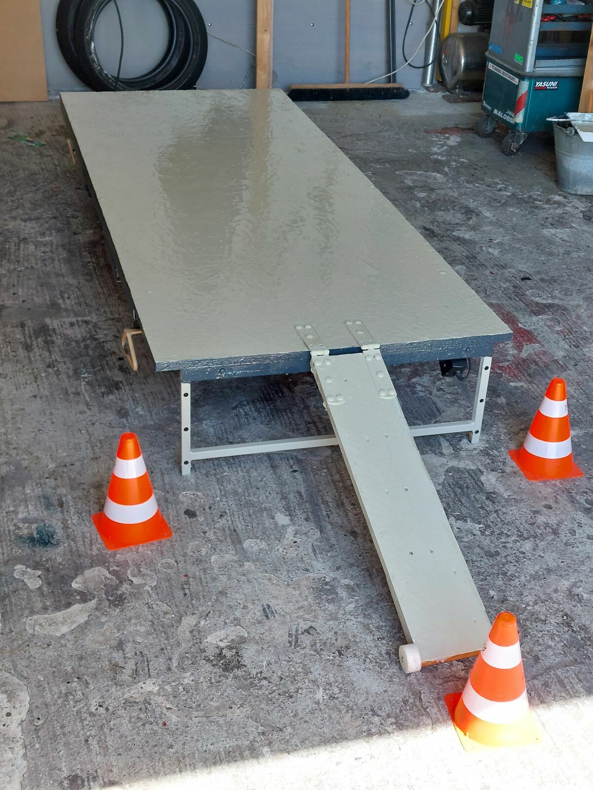 Und der DIY-Mopedhebebühne gleich mal einen neuen Anstrich, nebst Epoxybeschichtung, verpasst.