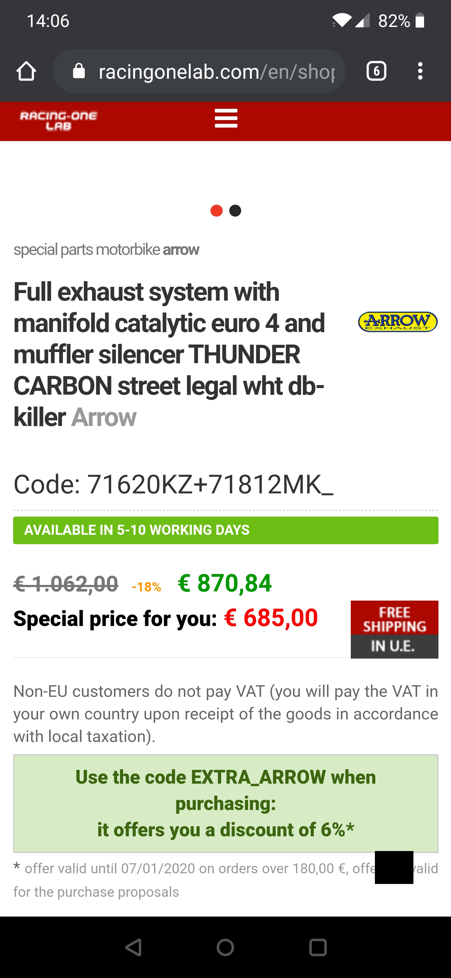 Ich habe mir in Italien bei Racing One Lab die Arrow Thunder in komplett Carbon bestellt.