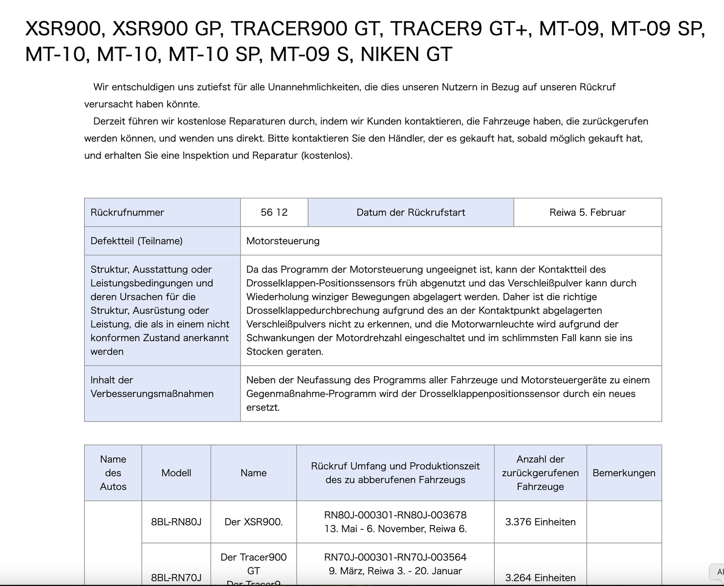 Bei MT125 habe ich nichts und sie fährt mit. Aber 15 PS sind keine 120 PS...
