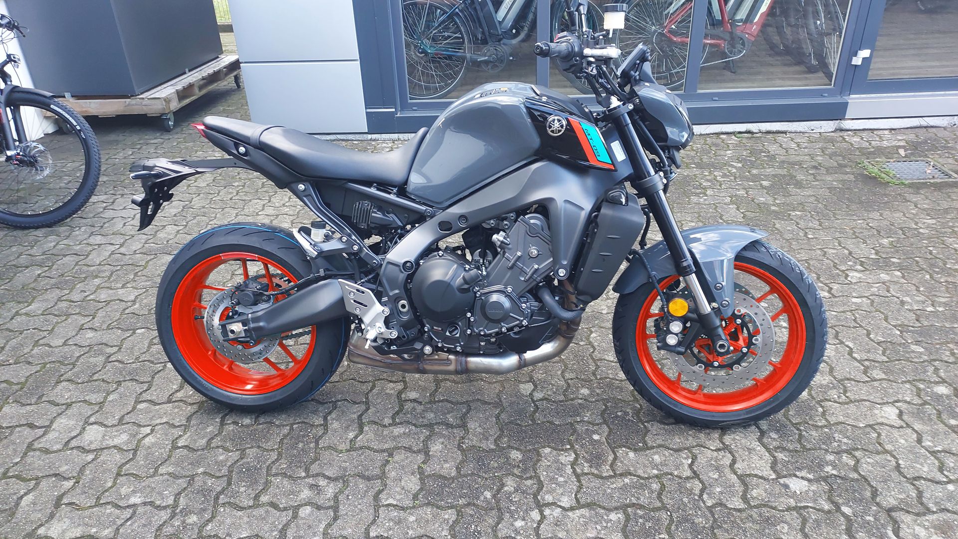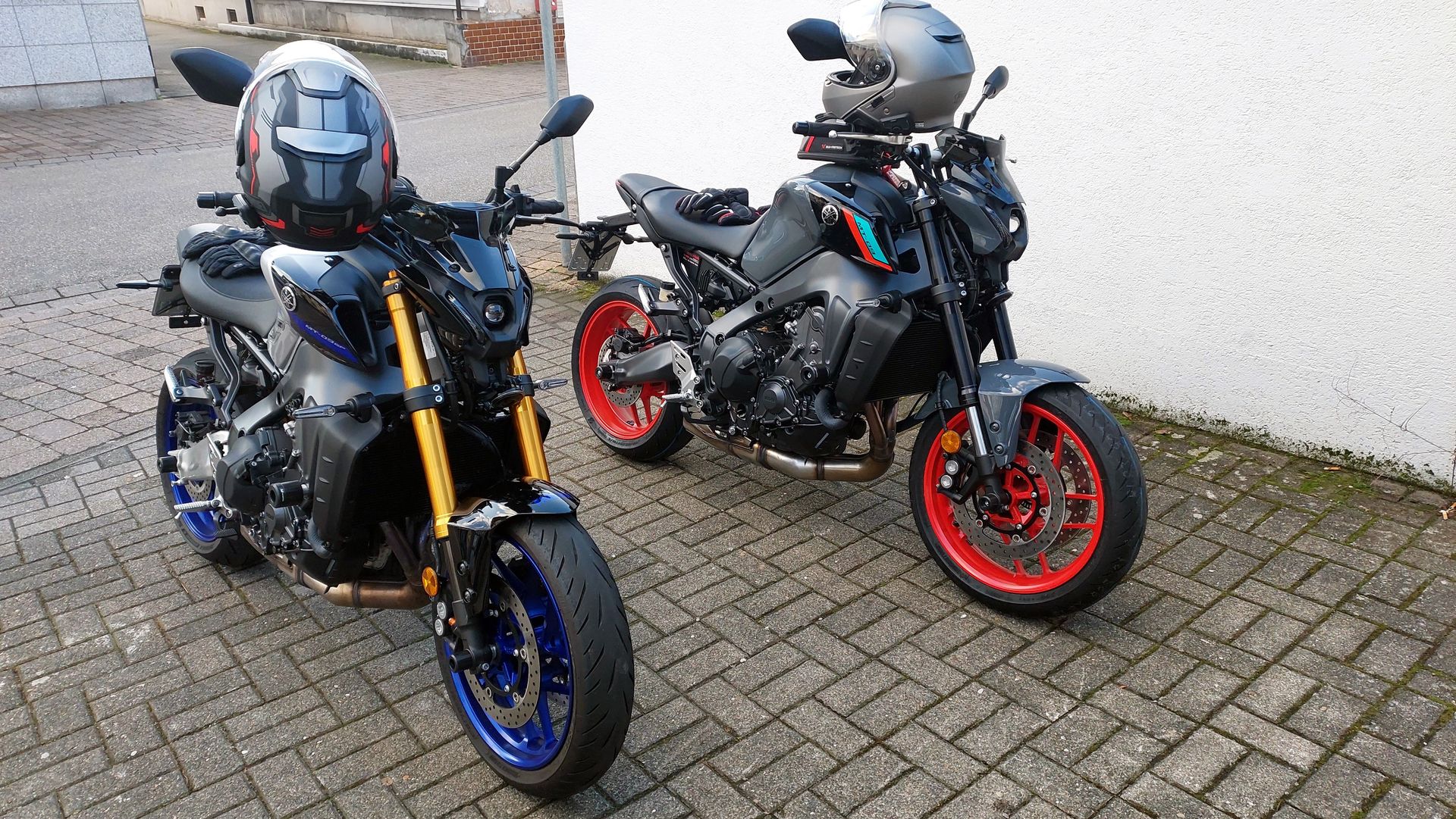 Um das Thema abzuschließen: Nach einer krankheitsbedingeten Verzögerung beim Lackierer, wurde die MT-09 meiner Frau am Freitag Abend geliefert. Gestern haben wir noch ein paar Teile montiert, ein paar fehlen noch. Bei der 1000er Inspektion kommen dann noch ein schwarzer Lenker, schwarze Hebel und Soziusfußrasten dazu. Wir sind dann auch noch eine kleine Runde gefahren, 8°C sind aber echt frisch.