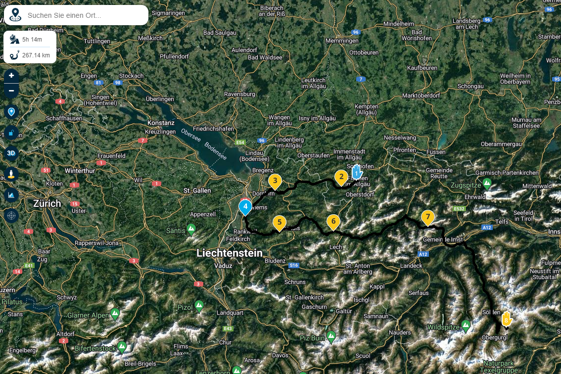 Alles anzeigenDas wird schon sehr sportlich für ein verlängertes We. Anreise bis Nähe Bodensee über kurvige Straßen sind schon über 600 km und 10 Std reine Fahrtzeit. Dann kannst noch jeweils ein Tag für das Allgäu, Vorarlberg und Appenzeller Land rechnen, wenn du was sehen und erleben willst. 5 Tage ist da wohl minimum.