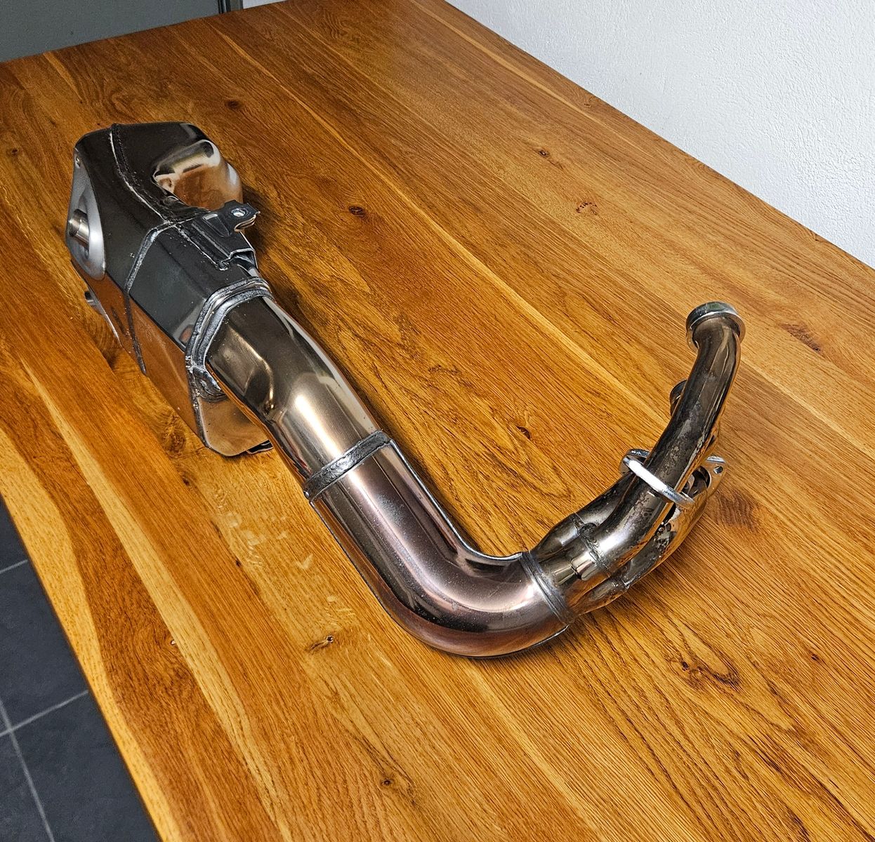 Mir wäre es auch lieber, wenn da nur ein kurzer Stummel nach unten wäre. Vermutlich muss es aber eine Mindestlöhne geben zwecks Zulassung und der Hauptständer muss auch noch irgendwo hin. Das Gitter hätte man weglassen können, aber so kann einem zumindest niemand etwas in den Auspuff stopfen oder niemand da einziehen.