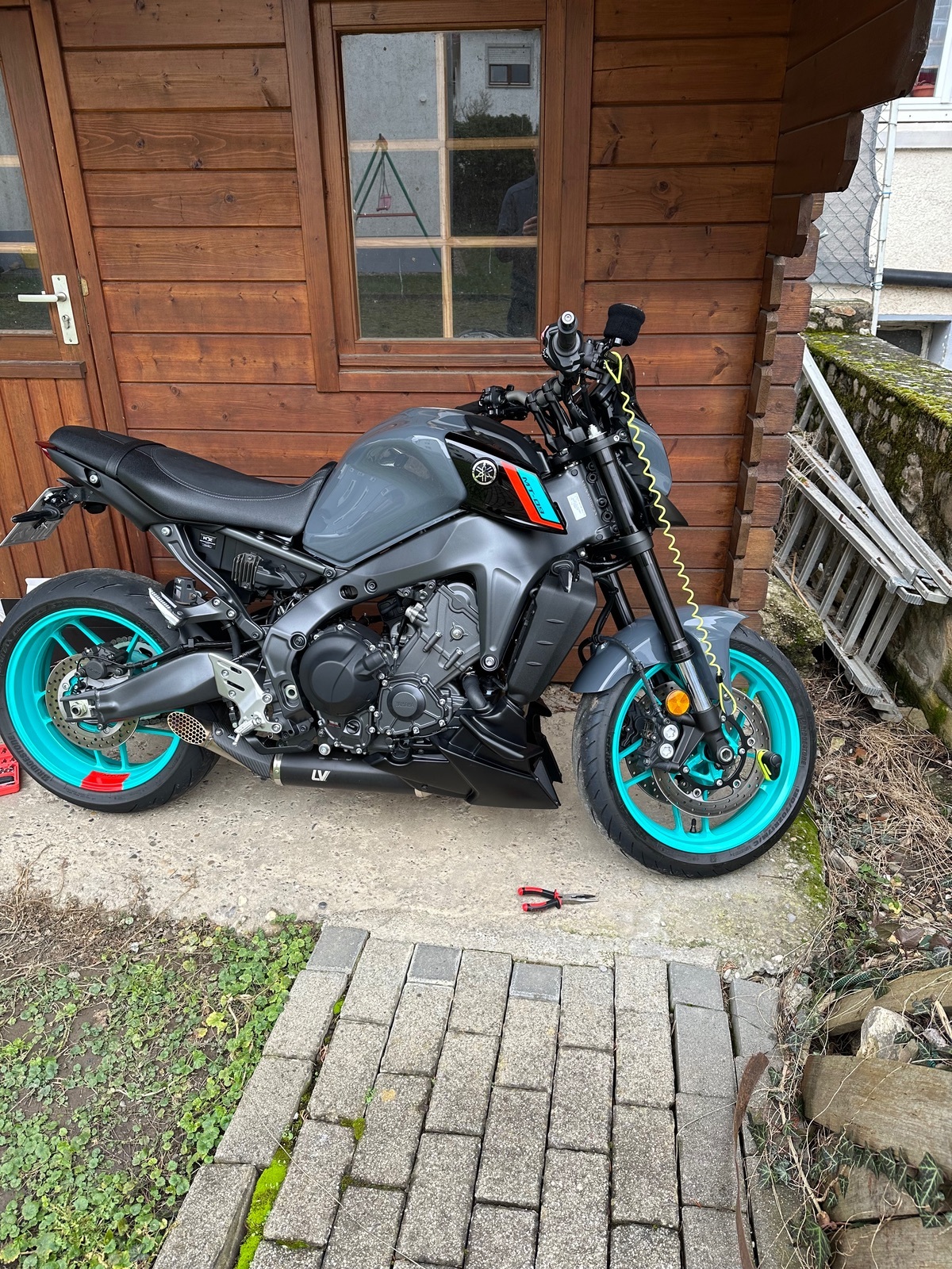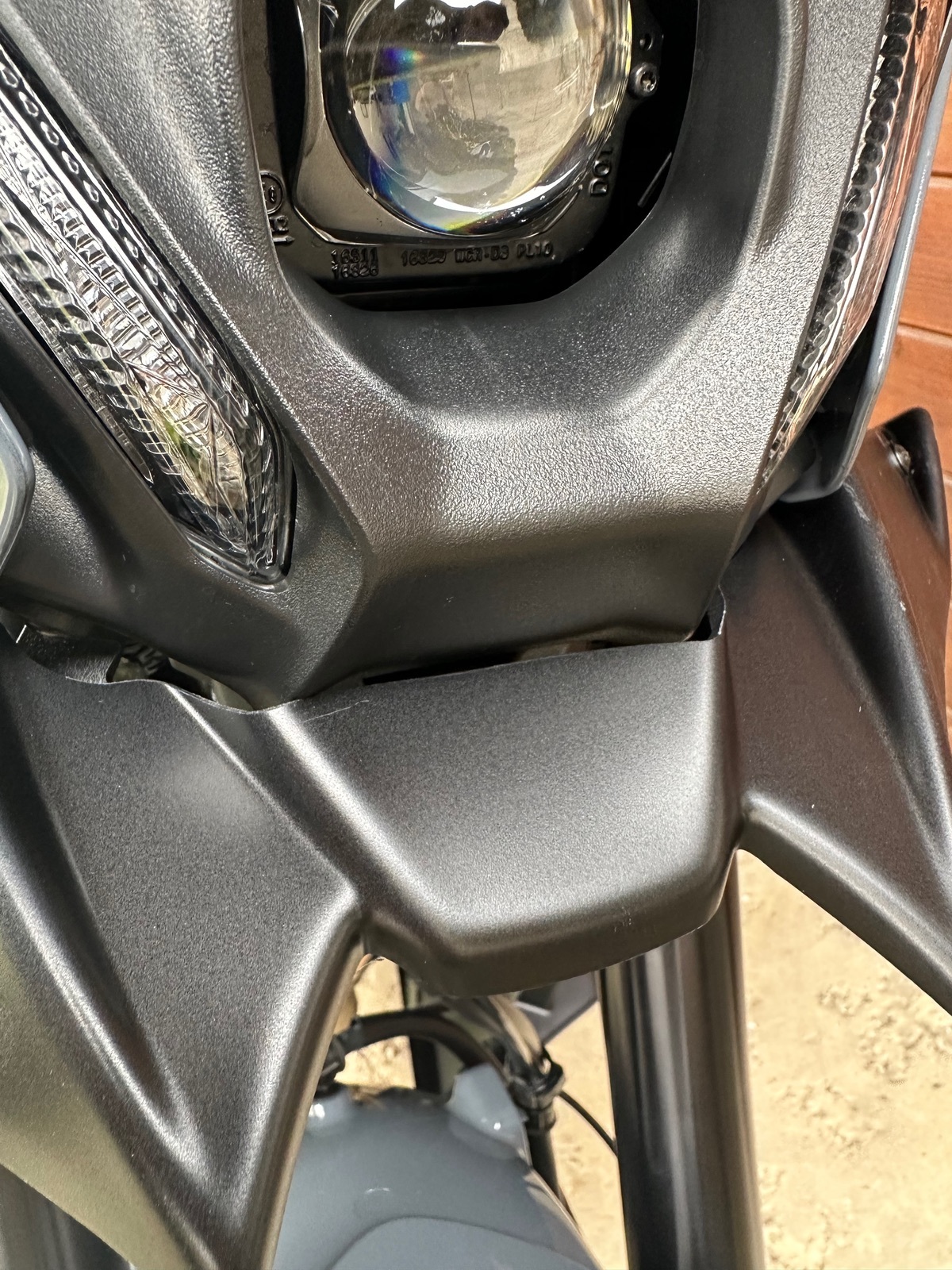 Die Halter lassen sich zum Glück ganz gut biegen, jetzt sollte es soweit passen. Trotzdem war es bei Bug und Frontspoiler immer ein Riesen Müll mit der Montage. Der Frontspoiler hat mir aufgrund der schlechten Passform auch einen kleinen Teil Lack an der seitlichen Scheinwerfer Verkleidung abgerieben, sieht man aber zum Glück nicht offensichtlich. Optisch bin ich sehr zufrieden, sogar in der Kombination mit der Motorrad Farbe. Ich glaube das Matte Plastik ist sehr empfindlich, aber das wird die Zeit zeigen. Jetzt fehlt nur noch der Seiten Spoiler.