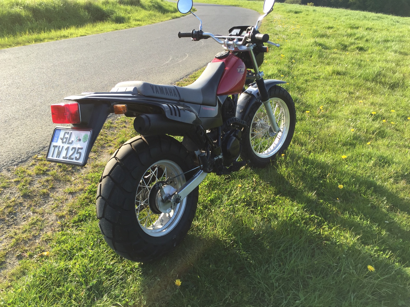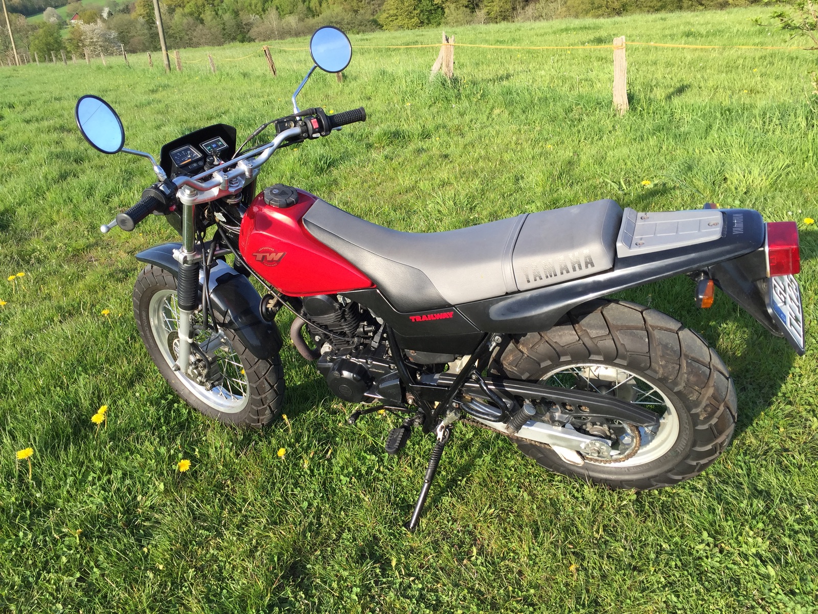 Meine TW 125 wurde im Januar 2001 zum ersten mal zugelassen. Sie hat ihre ersten 10 Lebensjahre damit verbracht, an einem Wohnmobil hängend durch die Welt geschleppt zu werden.