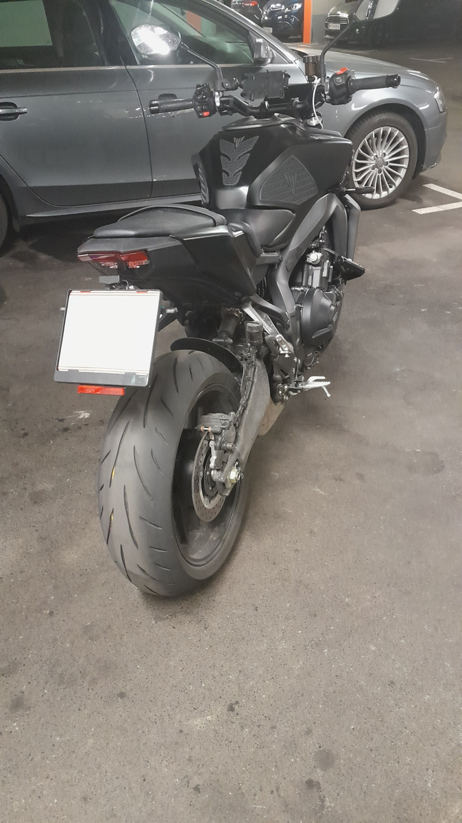 Ich hab mit Etikettenentferner das Yamaha Logo vorne am Rad, und die Etiketten oben rechts am Tank entfernt.