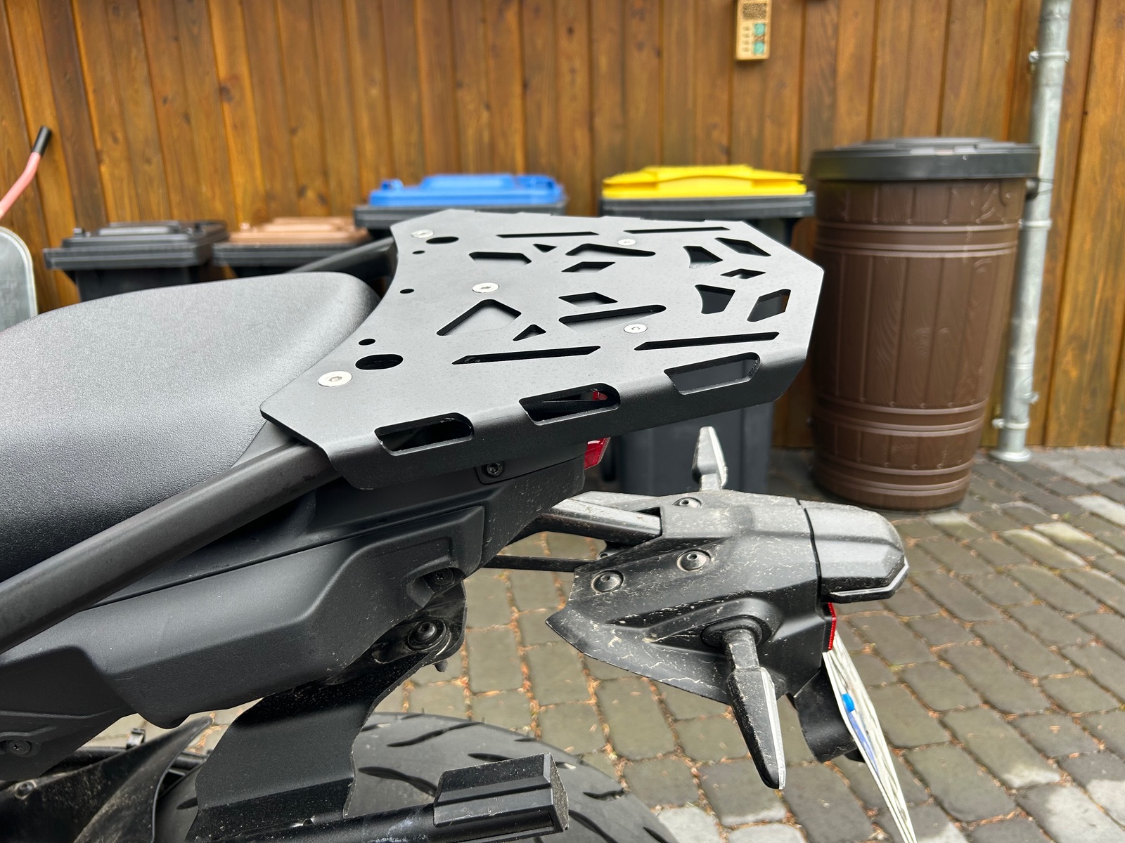 Sieht schick aus, war auch auf der Suche nach einer Gepäckbrücke mit Verzurrpunkten für eine Gepäckrolle und im Normalfall für meine Held Tenda Tasche mit dem Regenzeug. Leider sind die meisten Gepäckbrücken recht klobig.