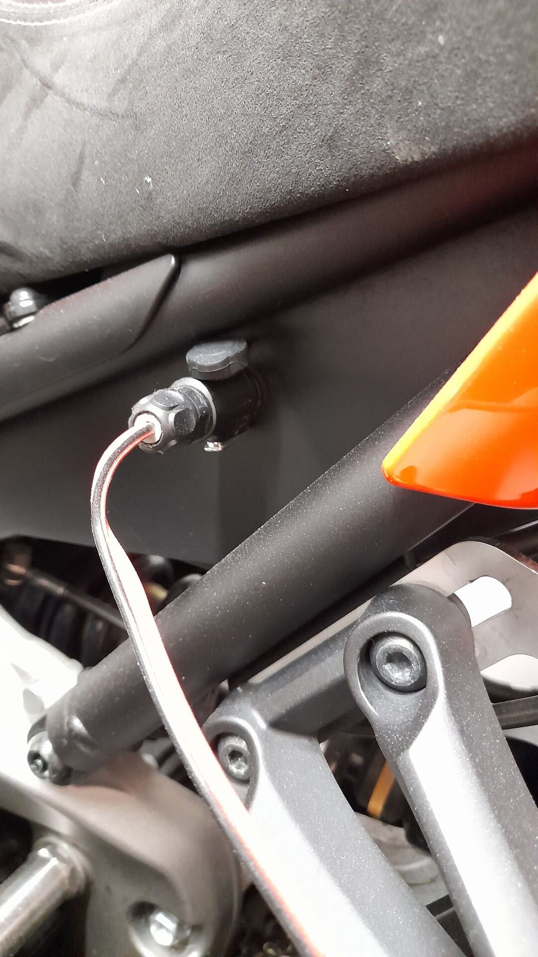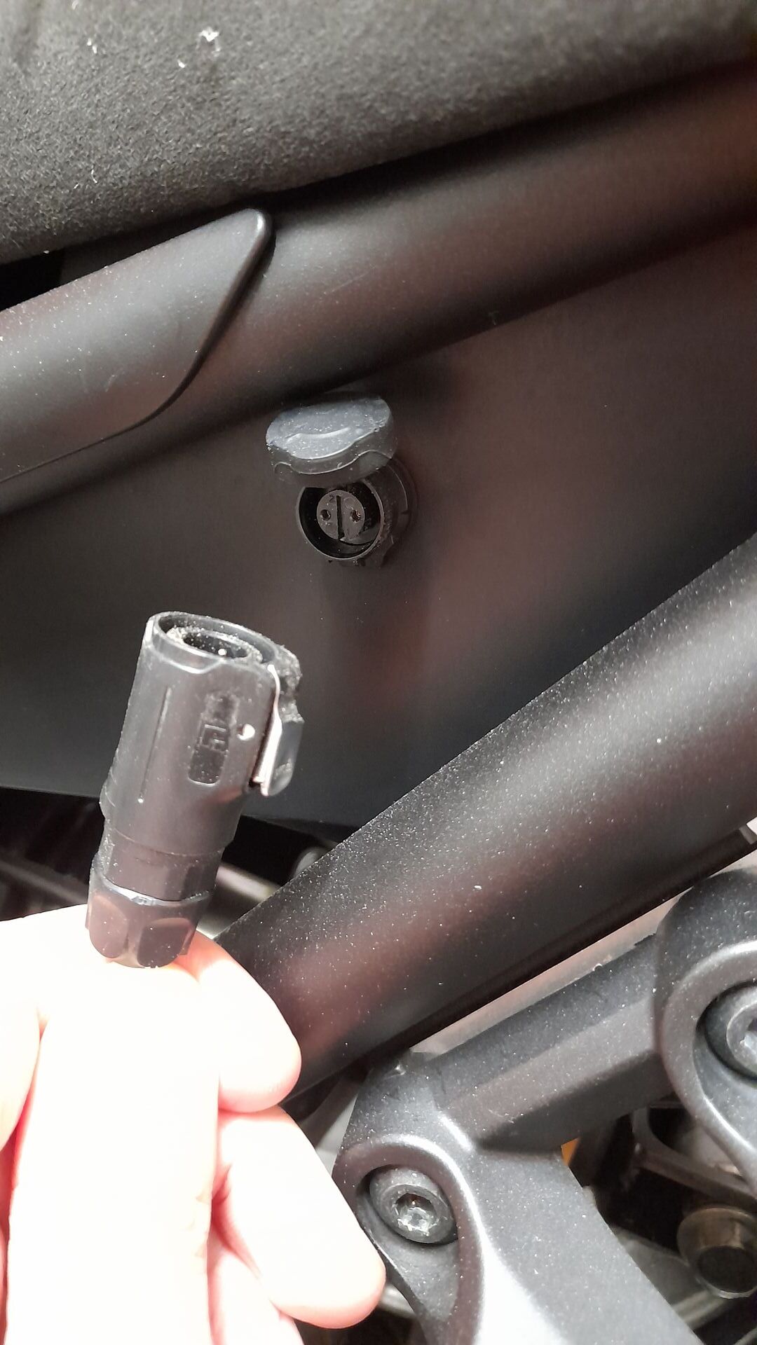 Loch in die Seitenverkleidung gebohrt, Einbaukupplung rein und verdrahtet, Fertig.