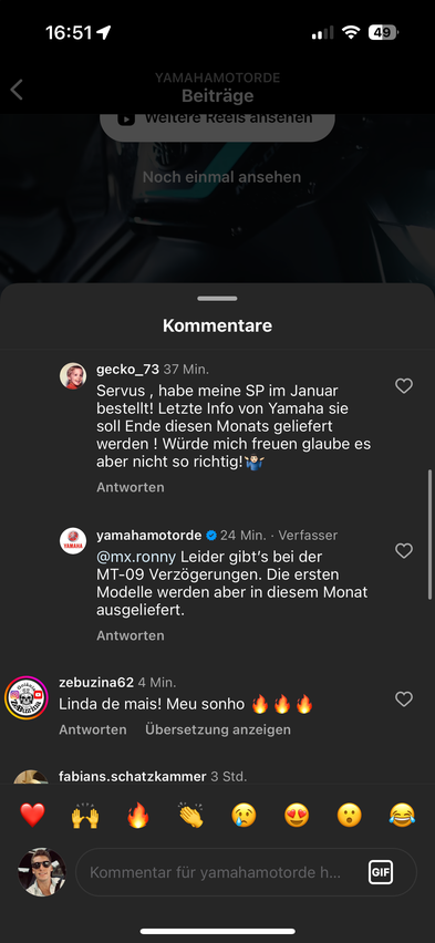 Glück auf! Habt ihr schon was neues bezüglich der Auslieferung von der MT-09 SP gehört? Aus meinem Händler kriege ich nichts rausgedrückt. Nur nach dem Motto: „Wir wissen selbst erst zwei Tage vorher Bescheid“…. ![]()