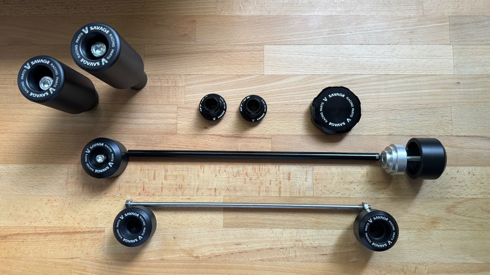 Alle Parts sind von der Fa. Savage Racing Parts, damit es ein wenig einheitlicher aussieht. Die Pads für die Achsen kenne ich von der Supermoto und die waren okay und haben Stürze gut weggesteckt.