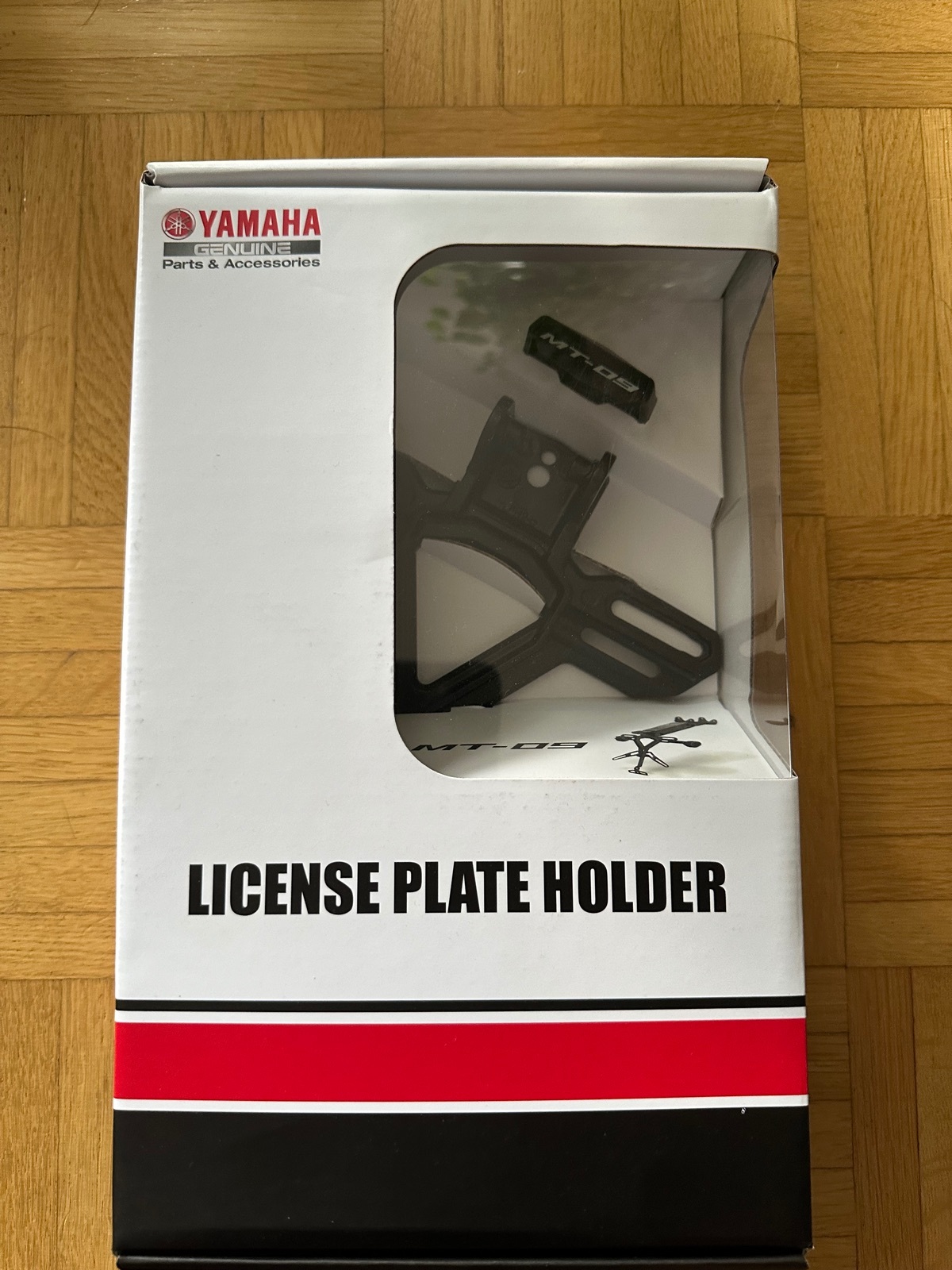 Der Kennzeichenhalter ist ungeöffnet und in der OVP.