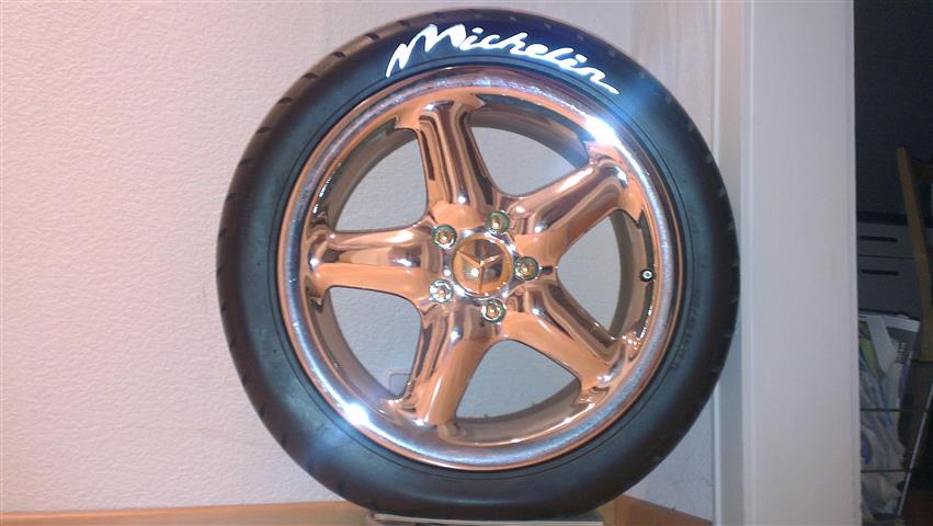 Nein, nicht auf einem Schrank, sondern auf einem Blumenroller. Die Felge sollte eigentlich in einem der Scheichtümer Rollen. Wurde aber als zuwenig vergoldet angesehen.