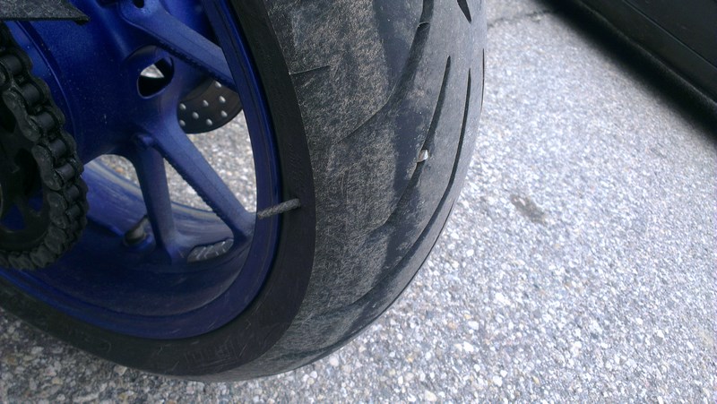 Nee ist nichts passiert. Das hat meine Frau erst bei der nächsten Pause bemerkt und das Stück Baustahl hatte zumindest soviel Charakter das es nur den Reifen zweimal durchbohrt hat, aber ein paar mm vor der Schwinge blieb es stecken. So gab es zum Glück nicht mal einen Kratzer.