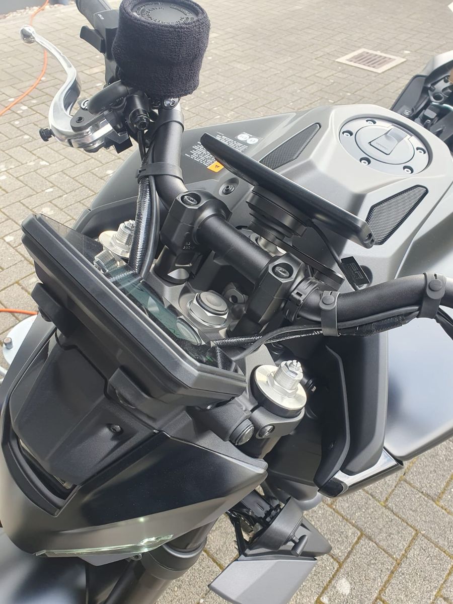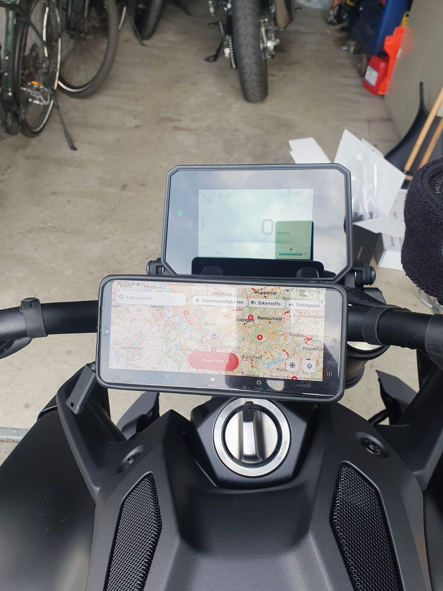 ja bei meinem Telefon Samsung 25 Ultra oder iphone 16 musste ich das Handy eine Nuance nach links setzen, da sonst bei der Arrettierung das Handy an der Tankverkleidung stößt. Aber so ist es im gleichen Winkel für die Ablesbarkeit genauso wie das Cockpit ![]()