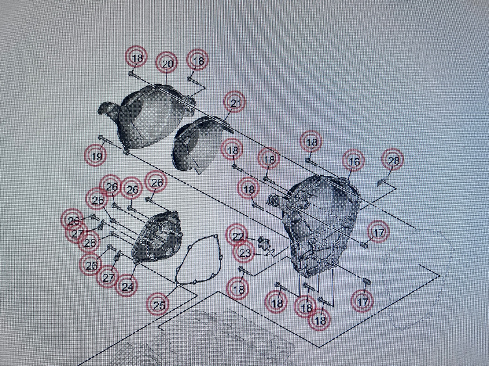 durch einen Umfaller hat leider der Kurbelgehäusedeckel einen Kratzer erlitten und den möchte ich gern tauschen. Ich hab mich jetzt schon im Ersatzteilkatalog umgesehen und gehe davon aus, dass ja von Hause aus dieser Protector drauf ist, so dass sich der Kratzer am Protektor und nicht am Deckel selbst befindet. So ist jedenfalls mein Verständnis. Wenn ich mir diesen Protector jetzt nachbestelle und tausche, muss ich dabei irgendwas beachten? Sind die Schrauben mit nem bestimmten Drehmoment angezogen, den ich beachten müsste?