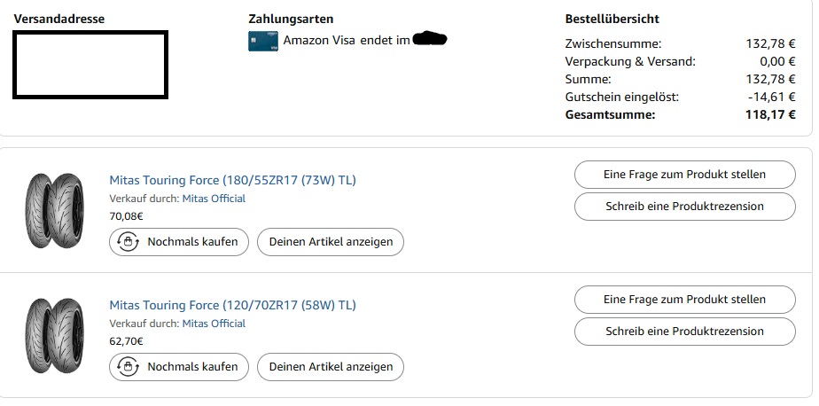Alles anzeigenFür mich ist der Mitas Touringforce in Preis und Leistung unschlagbar.