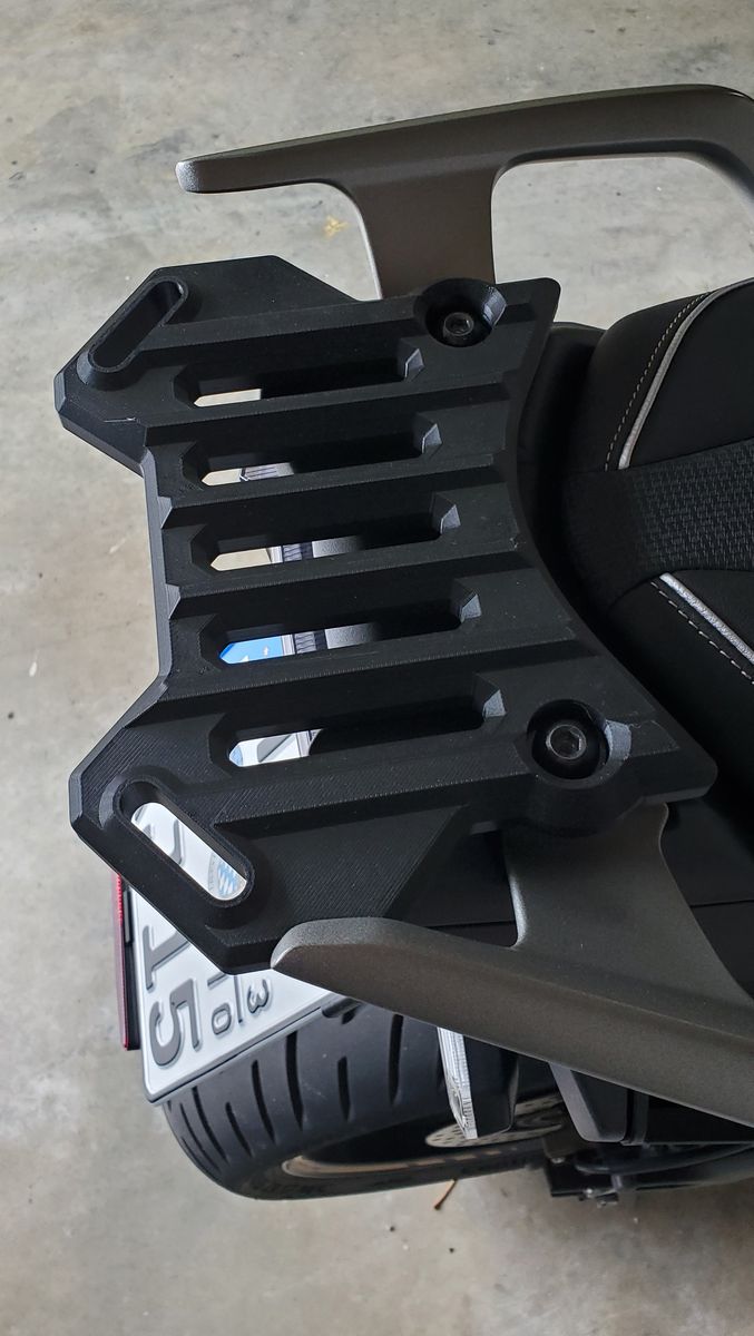 Auch wenn diese Alternativlösung nicht viel Platz bietet, hat man doch ein paar Verzurrpunkte mehr und für eine kleine Gepäckrolle ist die Fläche vollkommen ausreichend.