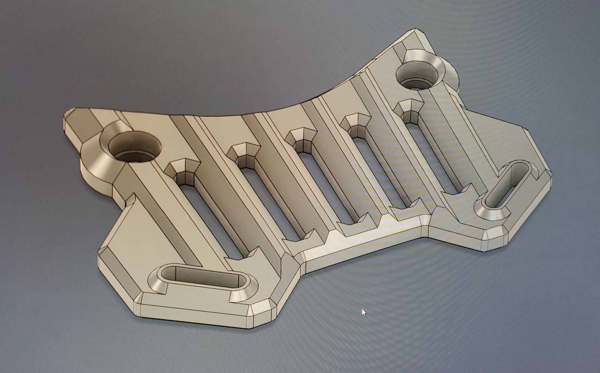 Dadurch, dass die Platte zu 100% mit Kunststoff gefüllt (wegen Stabilität und Bruchdehnung) und die Schrauben gegen Aluminiumhülsen im Kunststoff verschraubt werden, wiegt die Platte fast 500g.
