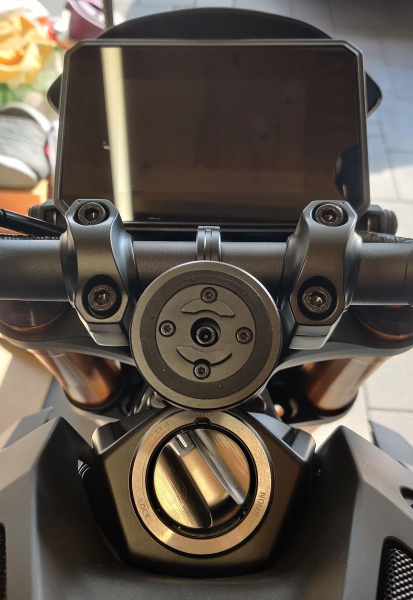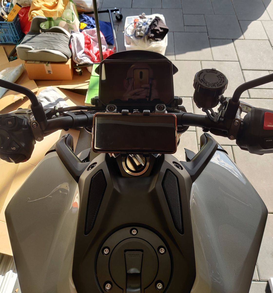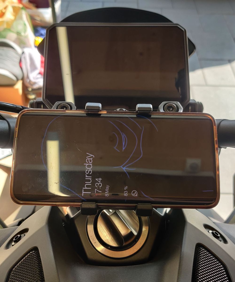 Da der Mount 3D mittig auf dem Lenker sitzt, ist das Handy zu weit oben und verdeckt aus (meiner!) Fahrersicht den unteren Teil des Displays. Wenn man 1,90m groß ist oder nen Sitzriese, könnte es vllt gerade so passen, dass es nichts verdeckt. Bei mir verdeckt es jedenfalls.