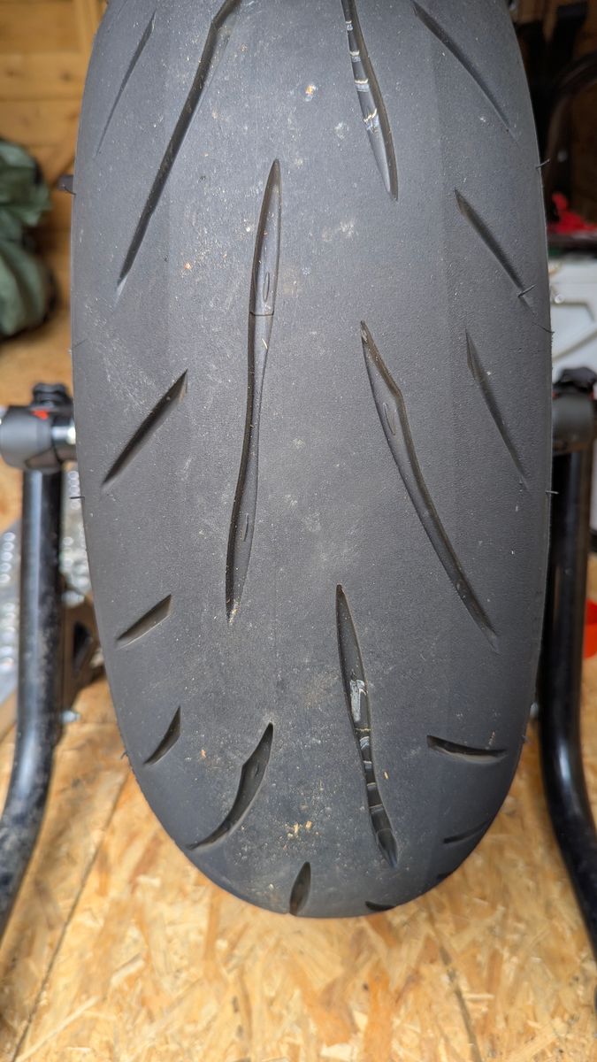 Der S23 ist die Erstausrüstung der RN87 und der Hinterreifen war nach 3400km runter, während der Vorderreifen noch weitestgehend unberührt war.
