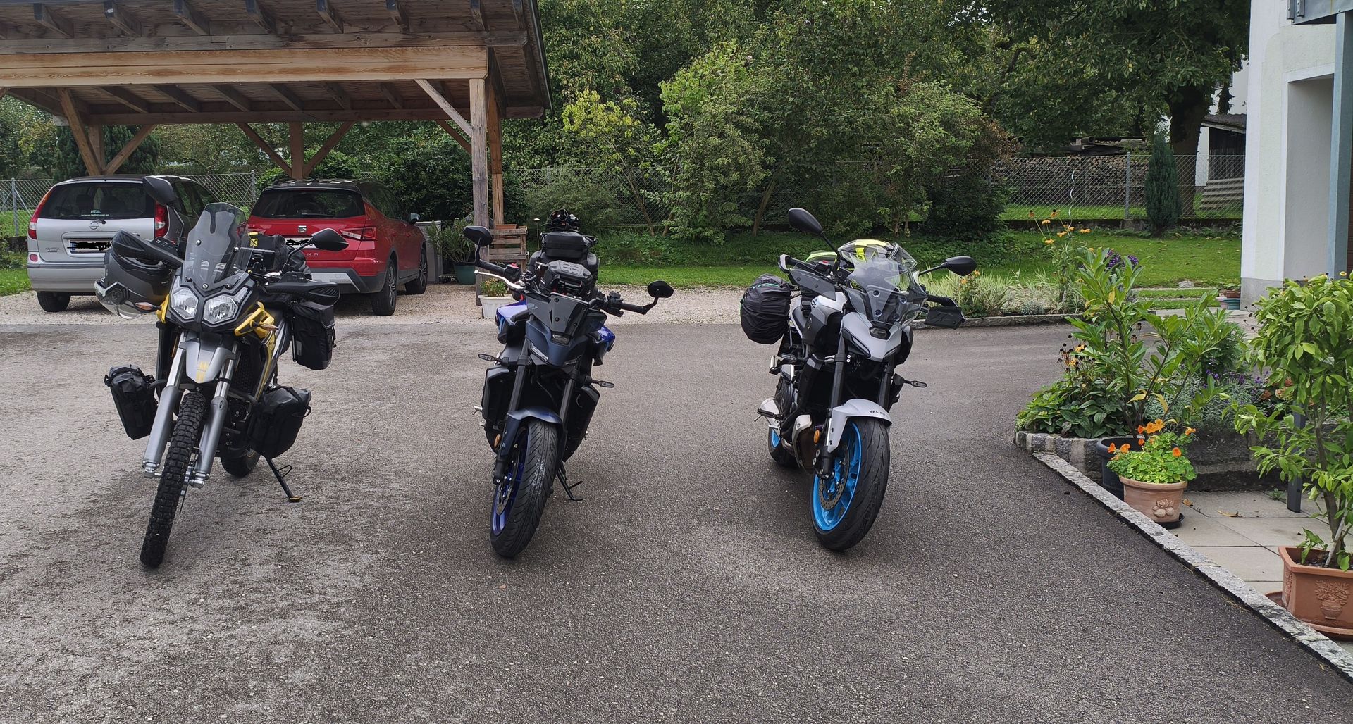 Meine Partnerin auf der MT-07 Y-AMT, ein Freund auf der Voge 300 Rally und ich auf der MT-09 Y-AMT.