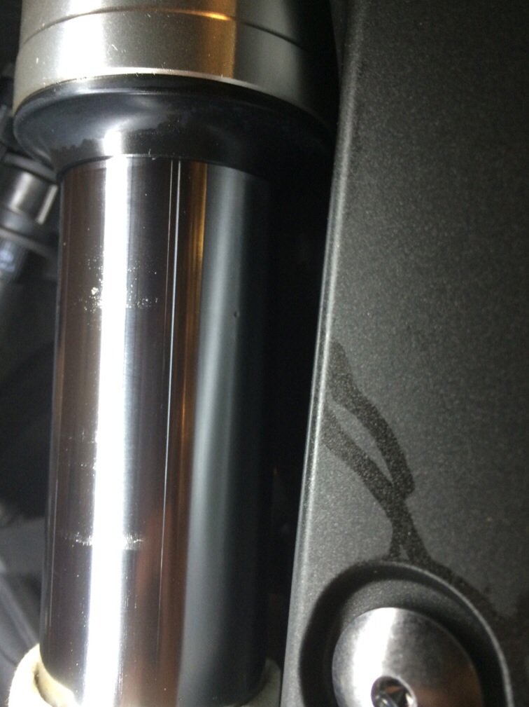 Hab jetzt die Tage die 1000 km voll gemacht und musste leider auf halber Strecke im Harz feststellen das das rechte Gabelrohr undicht ist und Riefen drin sind..... Sieht so aus als sei in der Gabel irgendein Fremdkörper weil die Riefe sich bis in die Gabel hoch zieht...