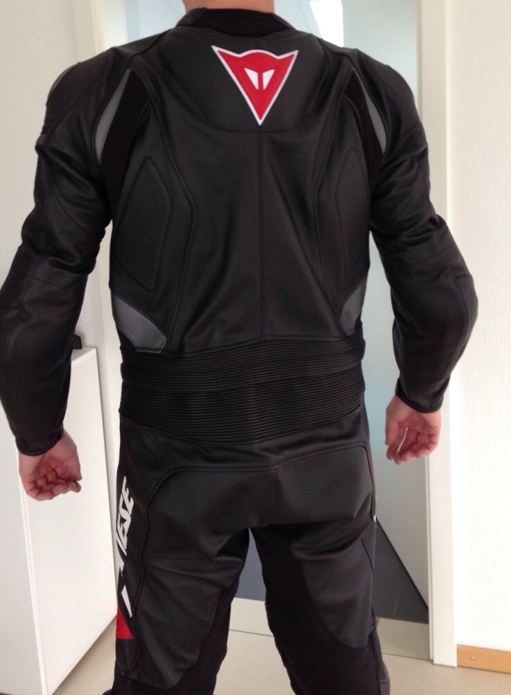 Der 56 passt in der Länge sehr gut und auch so fühle ich mich wohl - nur sieht mein Arsch aus, als hätte ich keinen da ich so viel Platz habe im stehen. Es würde gut noch eine Pempers dazwischen passen. Beim Sitzen auf dem Motorrad sieht es natürlich besser aus. Von vorn sieht alles echt straff aus.