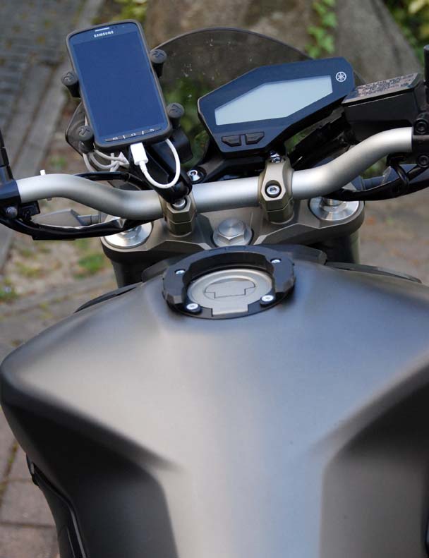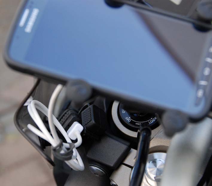 Das Problem, dass unter den Vibrationen am Moped die USB-Buchse des Smartphones leidet, habe ich bei meinem Setup wie folgt abgemildert: