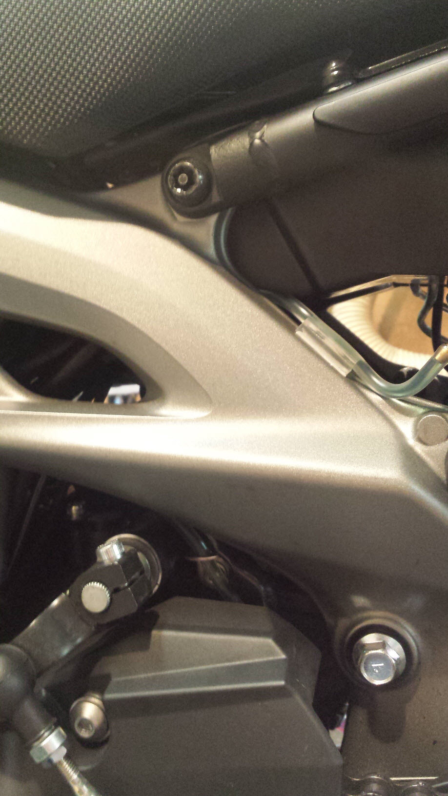 Du brauchst nebst dem kompletten Scheinwerfer, die Halterung und die Kunststoffabdeckung hinter dem Tacho. Ein Relais und ein Sortiment Stecker - Kabelschuhe. Damit das Ganze abgerundet aussieht habe ich die Sportscheibe von Yamaha verbaut.
