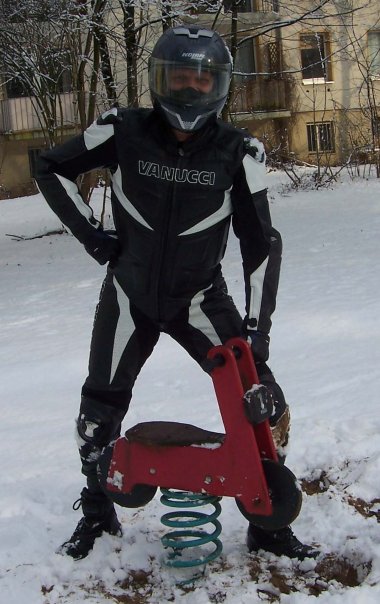 Nee, hab gerade noch mal eine Pille gegen Seekrankheit eingeschmissen und mir das Video noch mal angesehen. Er steht nur mit dem Linken auf den Soziusrasten...