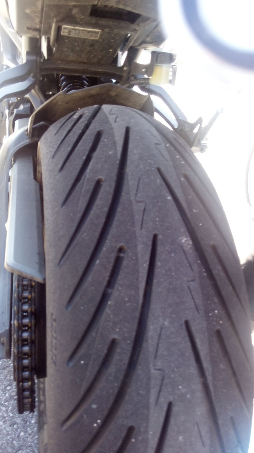 Also die Kantenbildung von der mittleren harten Schicht zur äußeren weicheren Schicht ist im Neuzustand am besten zu erkennen. Später verliert sich das immer mehr...ist im Fahrbetrieb nicht zu spüren. Der Avon Spirit ST funktioniert einwandfrei - nur die Laufleistung passt hier im Schwarzwald nicht. Ist eher was für den Norden.
