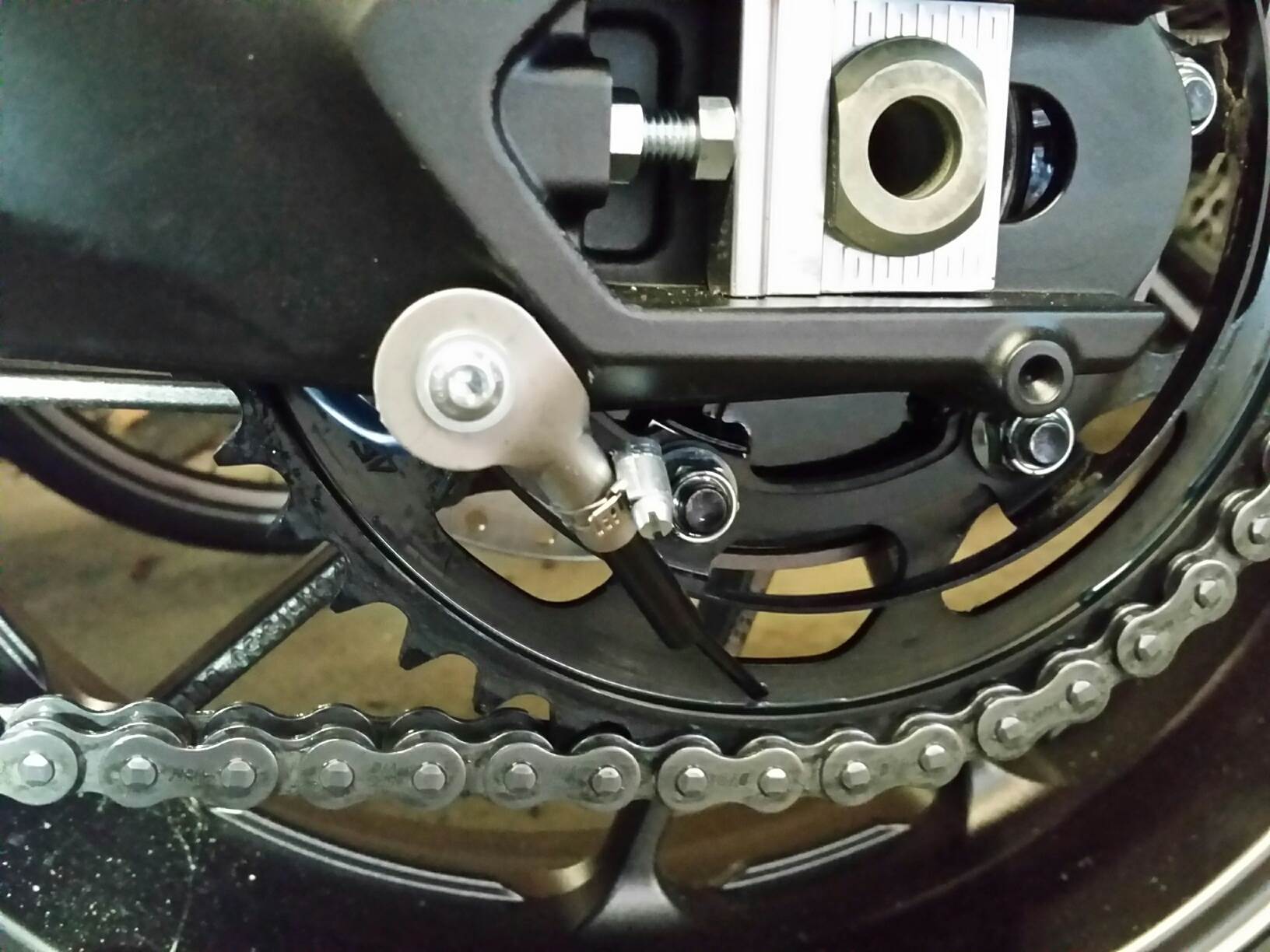 Den grundsätzlichen Nachteil einer Kette habe ich wieder mit einem Scottoiler behoben (hatte ich an der V-Strom vorher auch, ich würde nie wieder ohne Kettenöler fahren!). Das ich es mir sparen konnte, den Tank und den Luftfilter abzubauen, habe ich dem Forenmitglied „Kurvenkratzer“ zu verdanken. Auch dafür meinen ausdrücklichen Dank an ihn!