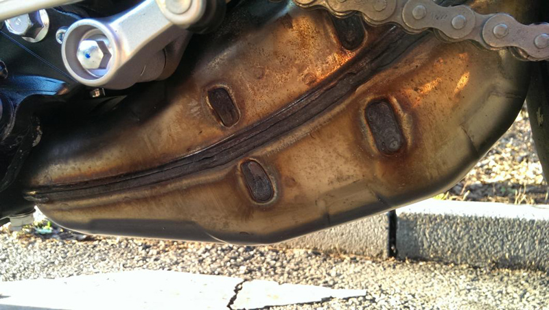 So, das Fläschchen mit Autosol Anti-Blau kam heute an, vorhin hab ich sowieso das ganze Maschinchen geputzt und die Kette entfettet, Felgen etc.. Dann das neue Wundermittel probiert und ich kann euch sagen, das ist ein geiles Zeuch. In 15 Minuten waren sämtliche Braunverfärbungen am Sammler und den Rohren weg, auch die Querverbindungen vorne am Krümmer. Alles piccobello.