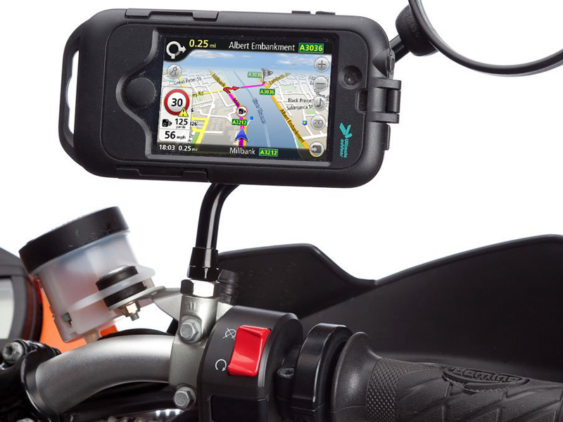 Vorteil: Passt für mein iPhone 4S (gibts auch für iPhone 5/Galaxy) Kugelaufnahme ist kompatibel mit RAM-Mount, SW-Motech und anderen. Bzgl. der iPhone Halterung, das Gehäuse ist wasserdicht, alle Bedienelemente (auch Tasten) werden nach außen weitergegeben, es nimmt (für mich sehr wichtig) den Ladestecker-Adapter mit ins Gehäuse auf. Das Gehäuse kann zusätzlich durch eine Riemenhalterung gesichert werden. Lässt sich leicht aus der Halterung entnehmen. Es ist verträglich mit allen Tankrucksacklösungen (da Spiegelmontage rechts oder links). Es kann hoch oder quer verwendet werden. Es verdeckt nicht den Zugang zum Starter/Schlüssel oder den Blick zur Tachoeinheit. Spiegelmontage birgt für mich zwei wichtige Vorteile, der Blick aufs Straßengeschehen ist weniger abgelenkt und der Lichteinfall/Reflexwirkung ist geringer (das ist bei meinem Givi-Tankrucksack ein wenig problematisch, auch kann man beim Givi die Navi nicht im Querformat nutzen, was die Sache ablesbarer machen würde).