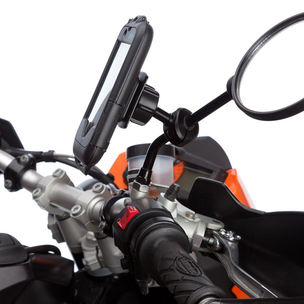 Ich habe mir jetzt diese Spiegelhalterung mit iPhone-Gehäuse bestellt und die andere Lösung zurückgeschickt (Adapter bot zu wenig Winkel, Halterung zu windig):