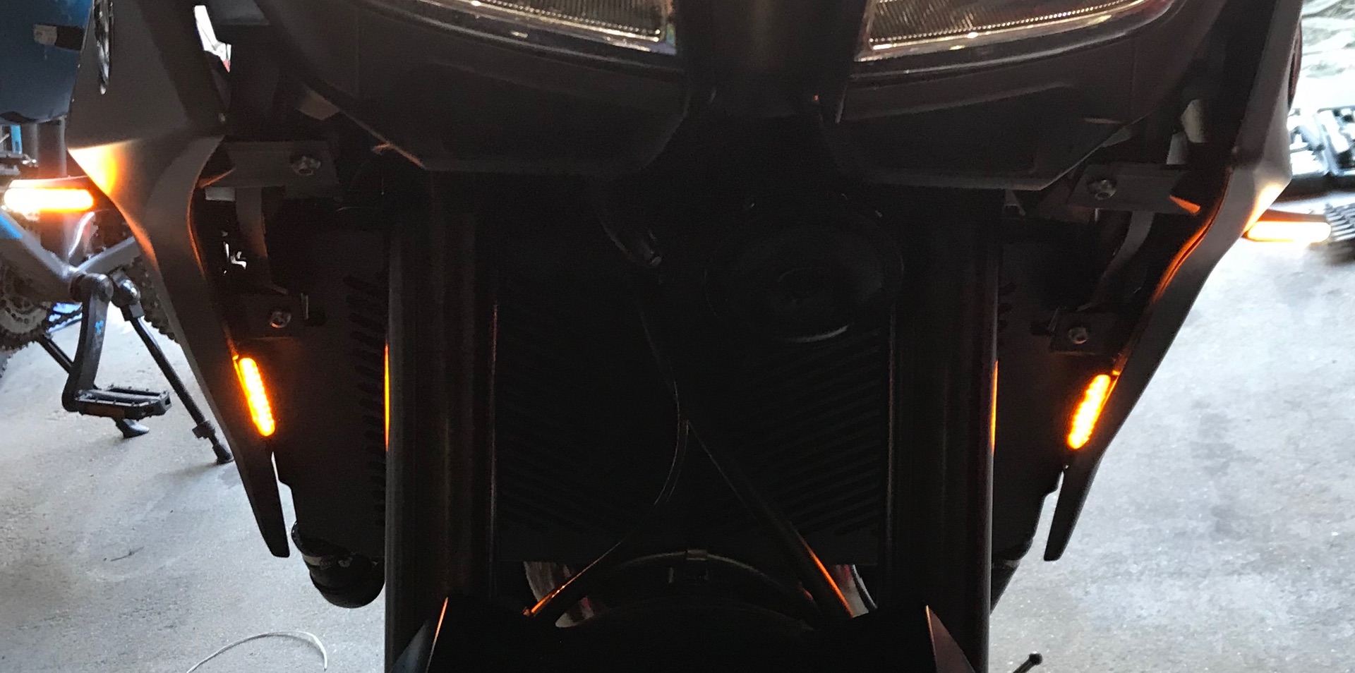 Habe gerade vorne die Verkleidungsblinker angebaut, falls es wem interesiert, mal vorher - nachher Fotos.