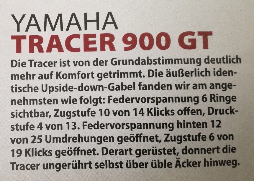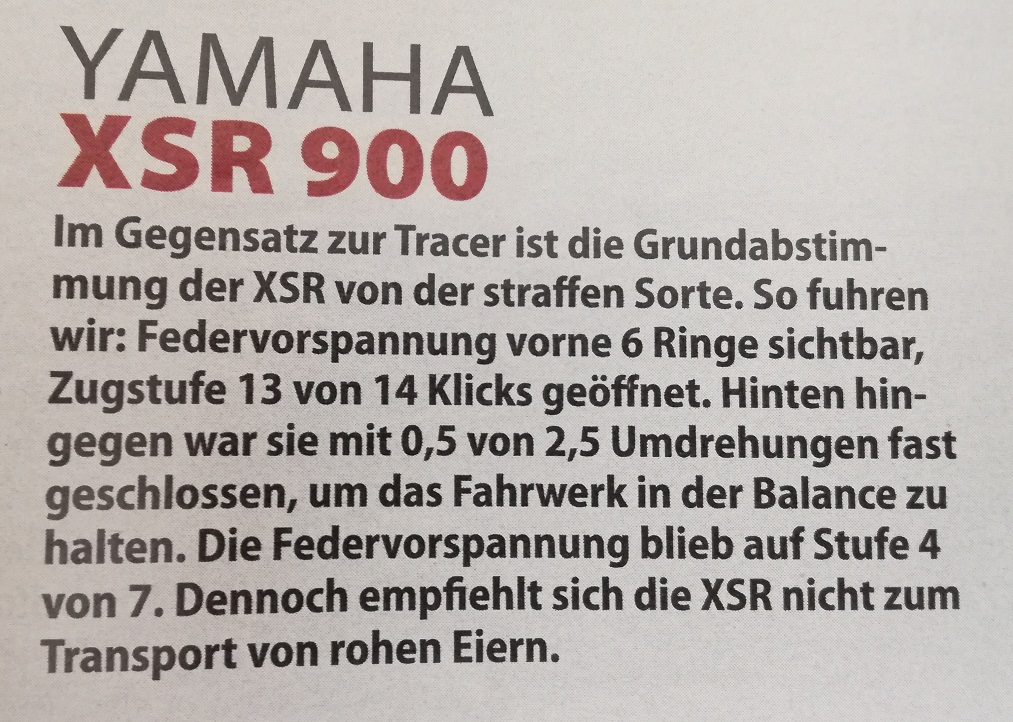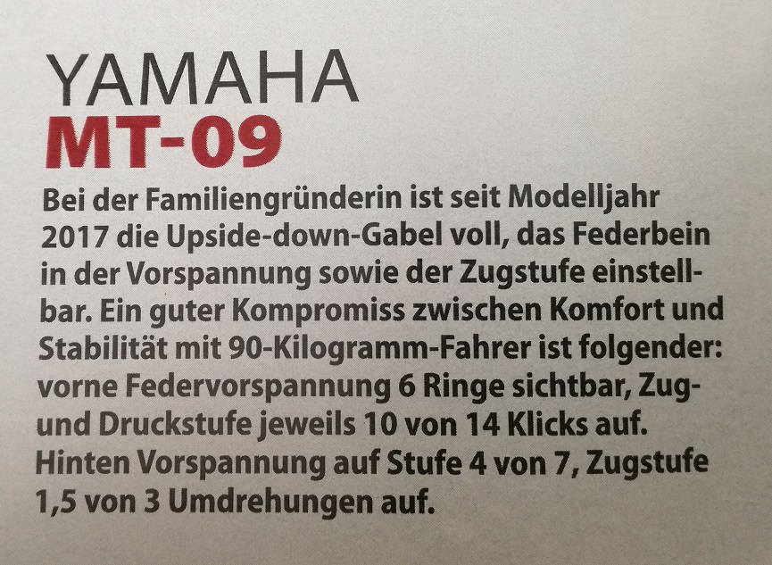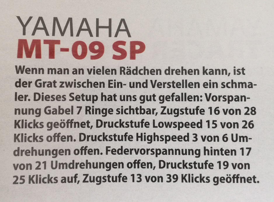 Hier mal die Fahrwerkeinstellungen aus Motorrad Zeitschrift.