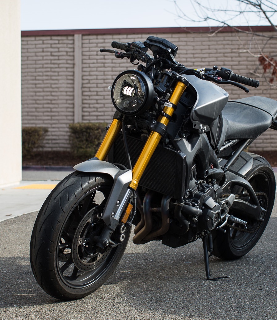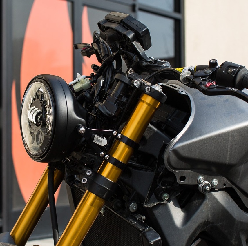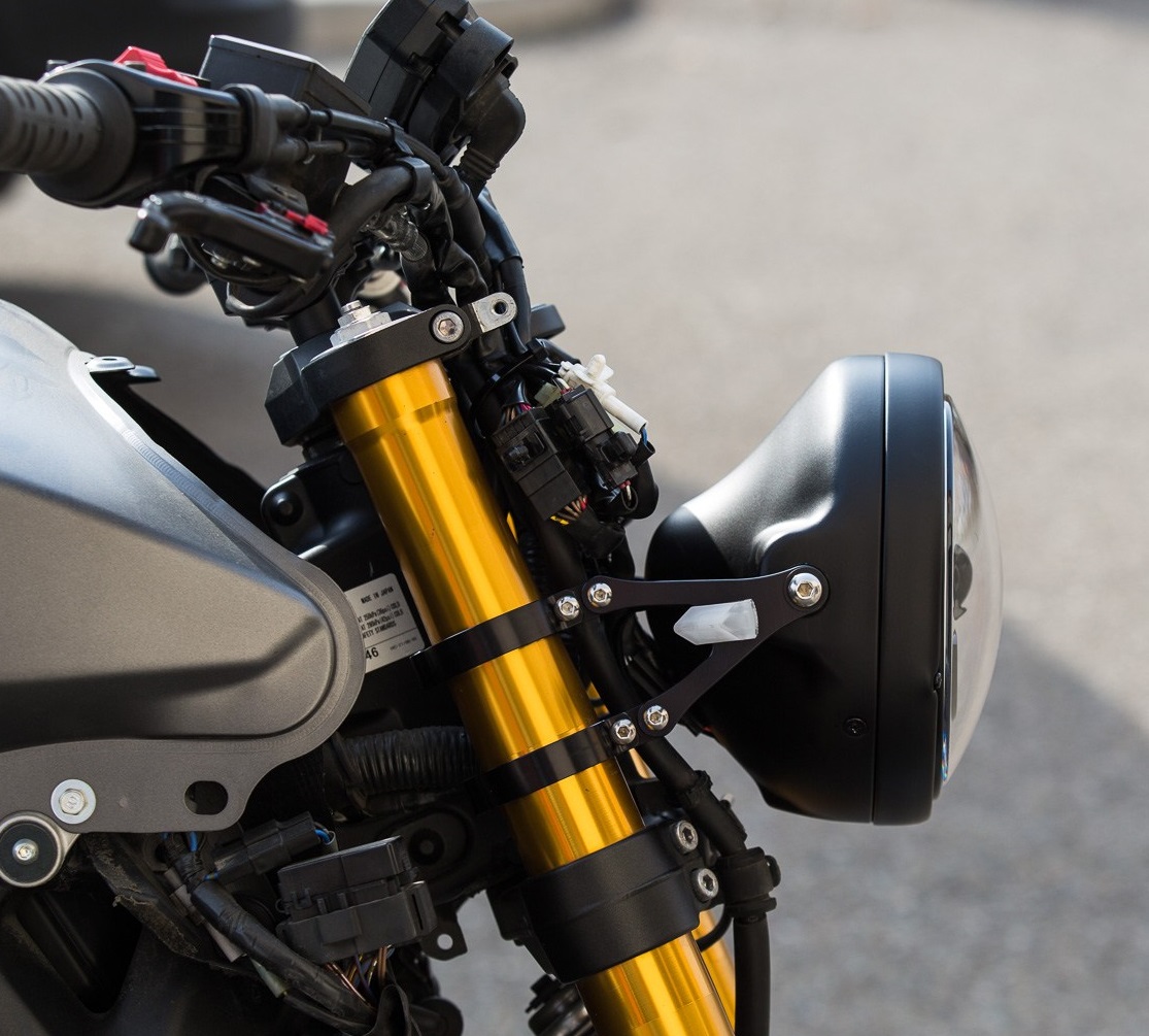 Die Speichenfelgen sind schön, keine Frage, aber es ging um Scheinwerfer und hier ist der auch nicht ohne (na ja, die Befestigung ist natürlich Geschmacksache)... zudem ist die Geometrie zwischen Scheinwerfer und Tacho stimmig.
