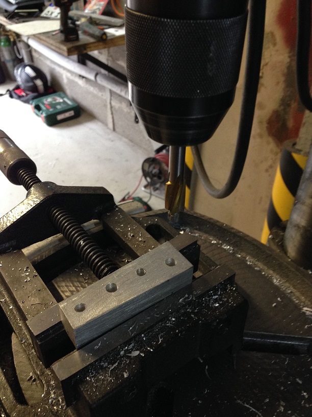 Dazu hat er zwei Distanzstücke aus Aluminium gebastelt (geschnitten, gebohrt, Gewinde reingedreht und und und ...)