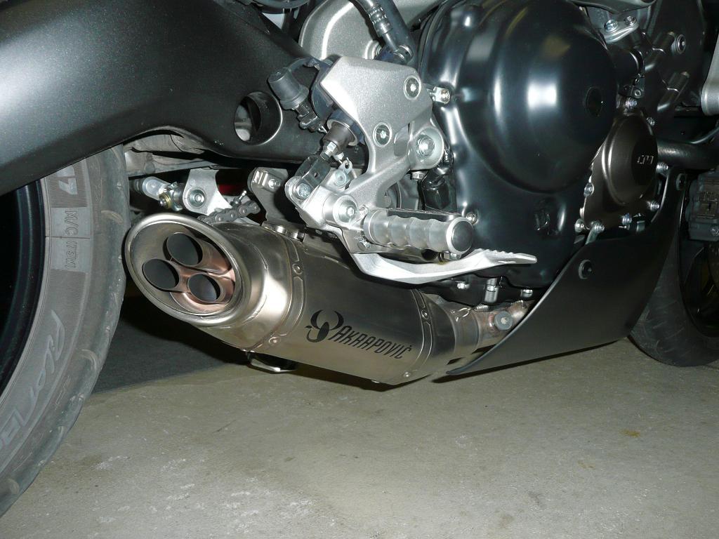 So schaut die verstellbare Fussrastenanlage an meiner MT mit Akra aus.
