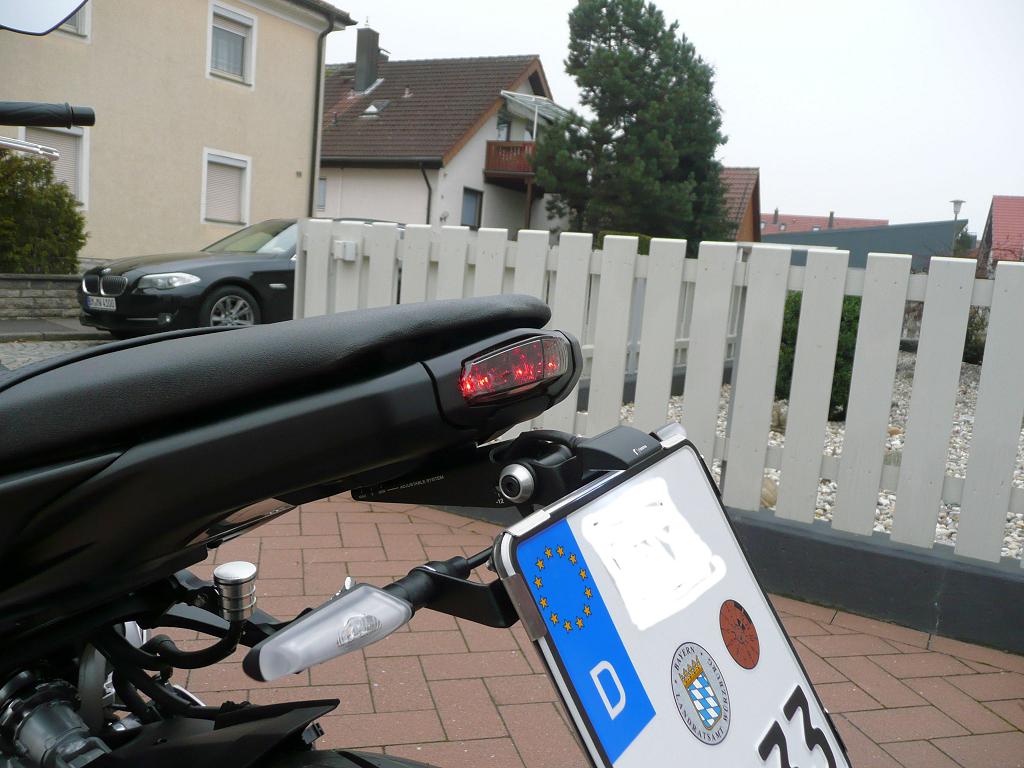 So schaut es mit dem Rizoma-Rücklicht aus. Bei Werks-Federung kann der KZH am Reifen scheuern.