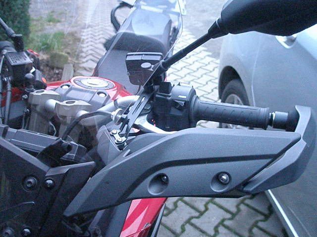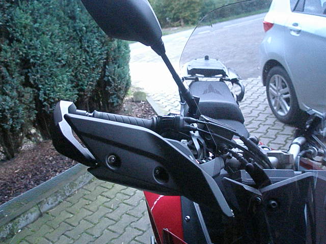 Man muß die Handguards entsprechend einstellen. Bei den normalen Spiegelverlängerungen auf dem Markt (Knick Ausführung)
