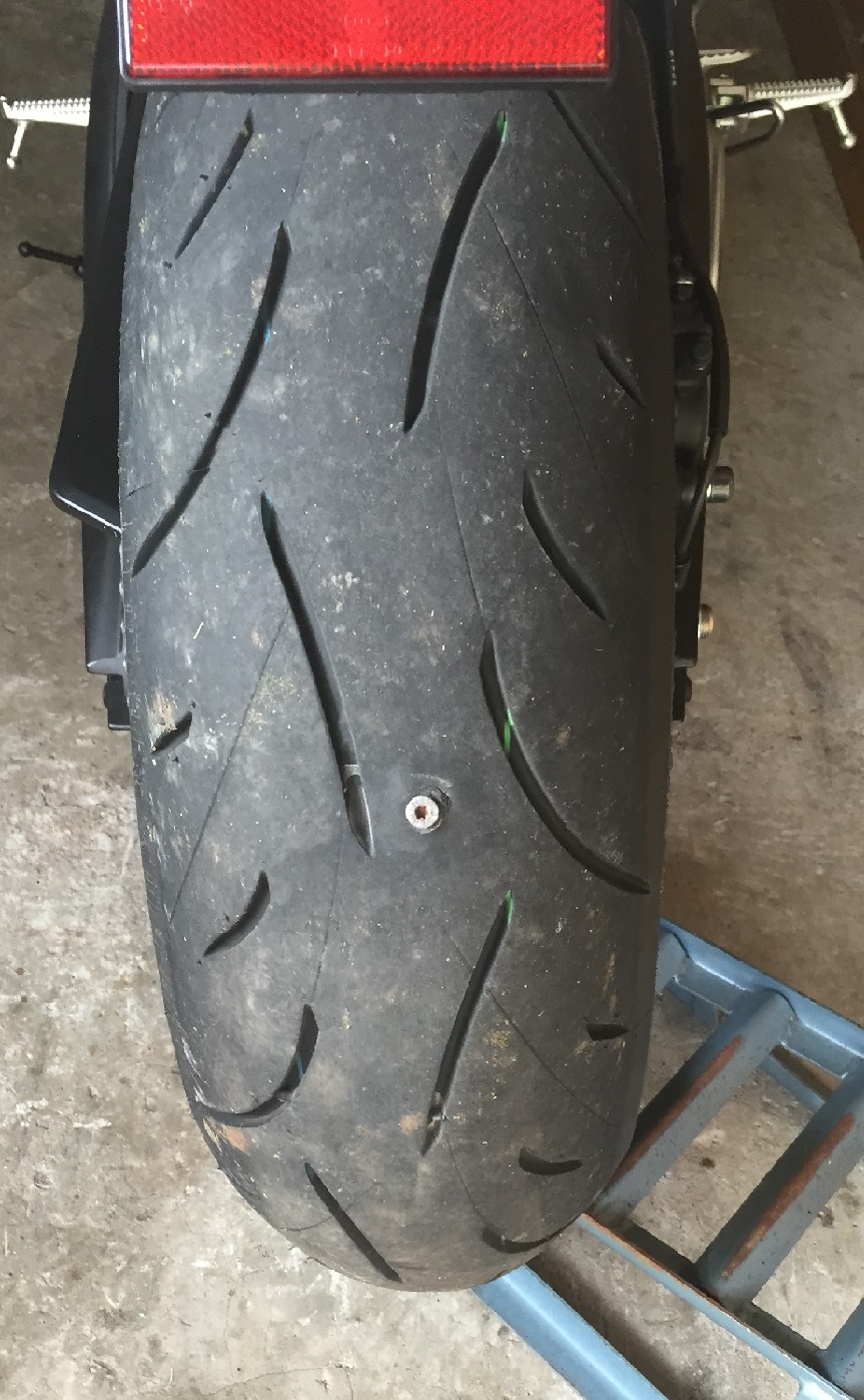 Nach super 610 Km hat ein 80mm langer Spax seine neue Heimat in meinem Reifen gefunden...