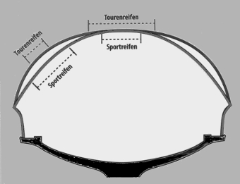 Der Pirelli Angel Gt ist ein ganz normaler Tourensportreifen mit sportlicher Auslegung, aber von Sportreifenkonturen weit entfernt. Das Gt noch touristischer ist als sein Vorgänger, zeigt deine Grafik recht schön. Es ist also beim Gt offensichtlich mehr Schräglage nötig als beim St um den Angststreifen zu eliminieren. -