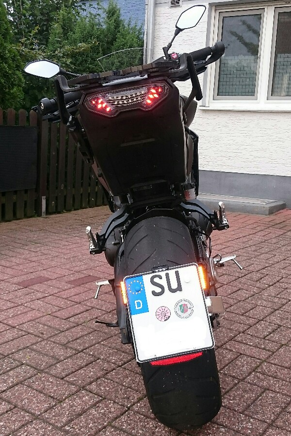 Das Kennzeichen ist auf einer 15mm starken Kunststoffplatte befestigt, damit die Elektronik und sämtliche Schrauben geschützt und nicht sichtbar sind! Außerdem müsste ich die Blinker ja irgendwie anständig verbauen ![]()