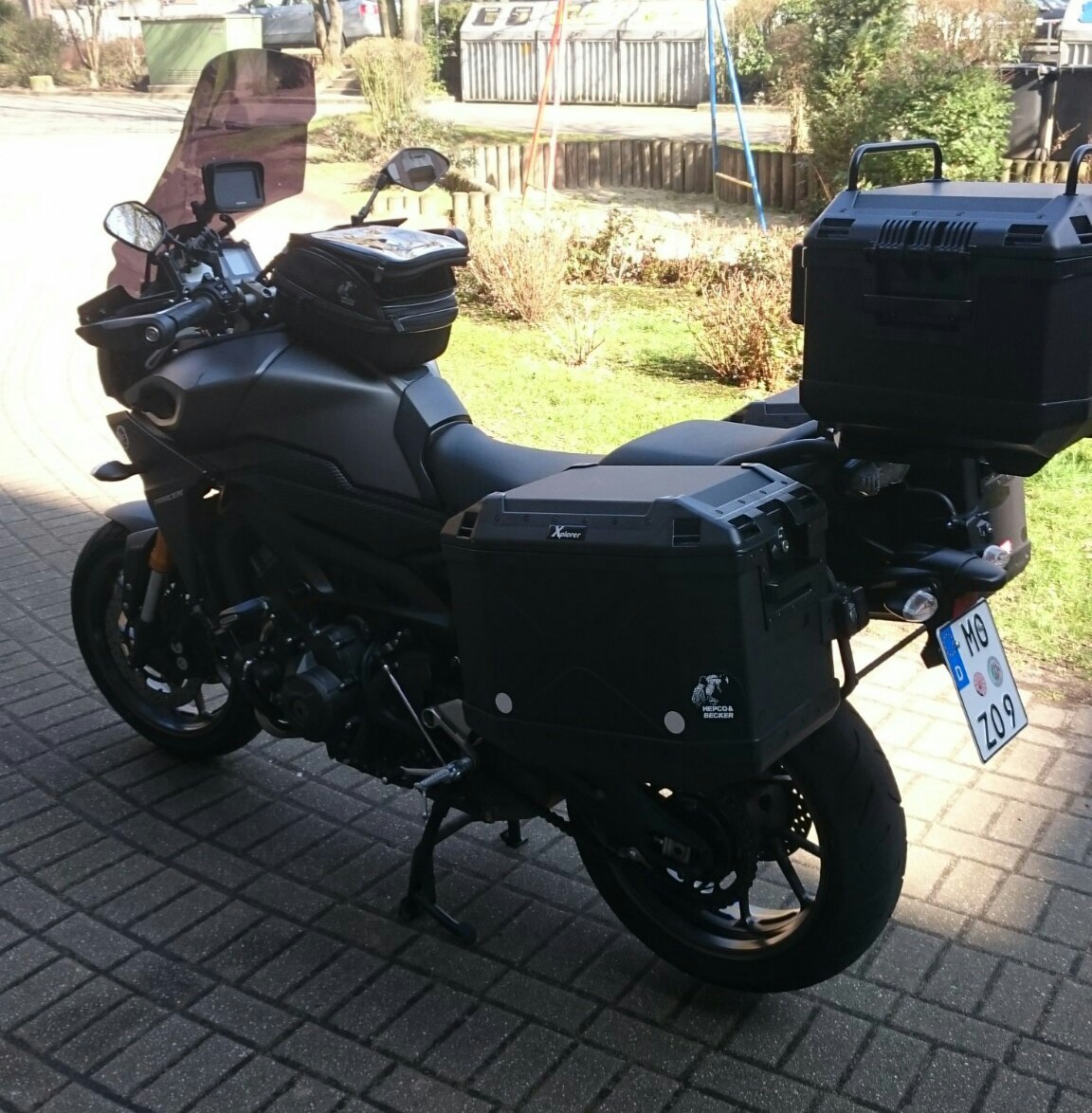 Wen ich mit Koffern auf Tour fahre, mit Sozia, hab ich die Puig Tourenscheibe drauf, auch in 80% schwarz, ist stimmig meiner Meinung nach und das Navi passt da gut hinter die Scheibe. Das ganze sieht dann zwar sehr nach Tourer aus, funktioniert aber absolut Top.